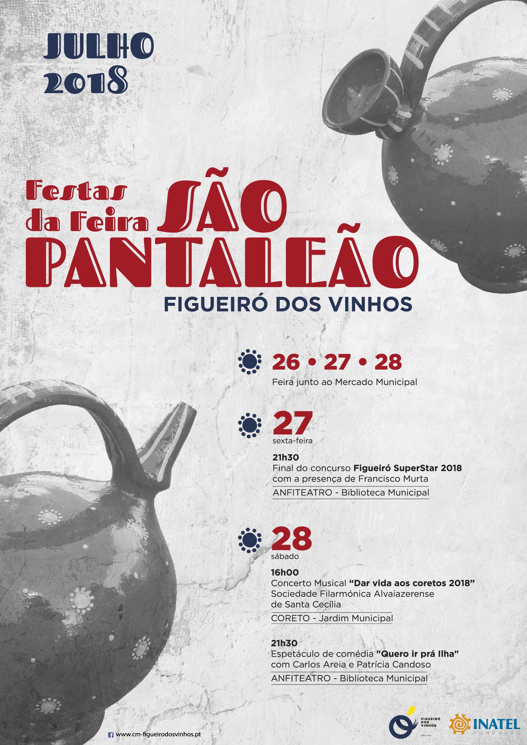 A Feira de raízes medievais é motivo de festa pelo que os dias 27 e 28 serão palco das artes performativas. No dia 27, pelas 21h30, o Anfiteatro da Biblioteca Municipal receberá a Final do Concurso Musical “Figueiró SuperStar 2018”, com a presença de Francisco Murta, ex-concorrente do programa de talentos “The Voice”. “Dar vida aos Coretos 2018”, é a proposta para o início da tarde do dia 28, com a realização de um concerto proporcionado pela Sociedade Filarmónica Alvaiazerense de Santa Cecília, no Coreto do Jardim Municipal. O teatro não podia faltar e este ano o Anfiteatro da Biblioteca Municipal receberá a comédia musical de Carlos Areias “Quero ir p’rá ilha”, um espetáculo que promete um final de S. Pantaleão pleno de gargalhadas e boa disposição. Os bilhetes para este espetáculo têm um custo de 2,50€ e estão à venda no Posto de Turismo de Figueiró dos Vinhos a partir de 16 de Julho.