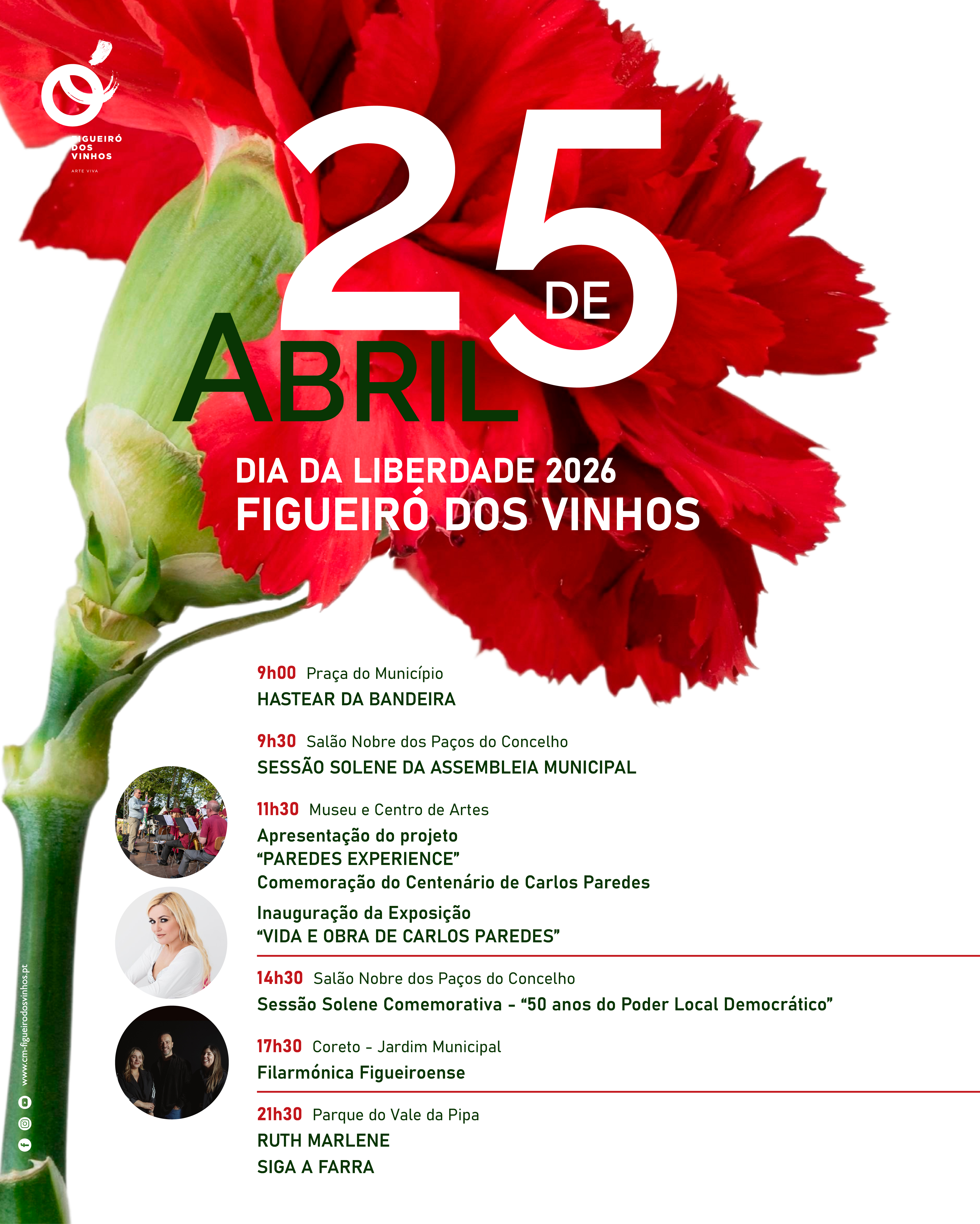 O Município de Figueiró dos Vinhos assinalará as comemorações do 52.º aniversário do 25 de Abril com um programa diversificado, que conjugará a solenidade da efeméride com momentos culturais e de convívio, envolvendo diferentes públicos ao longo de todo o dia.